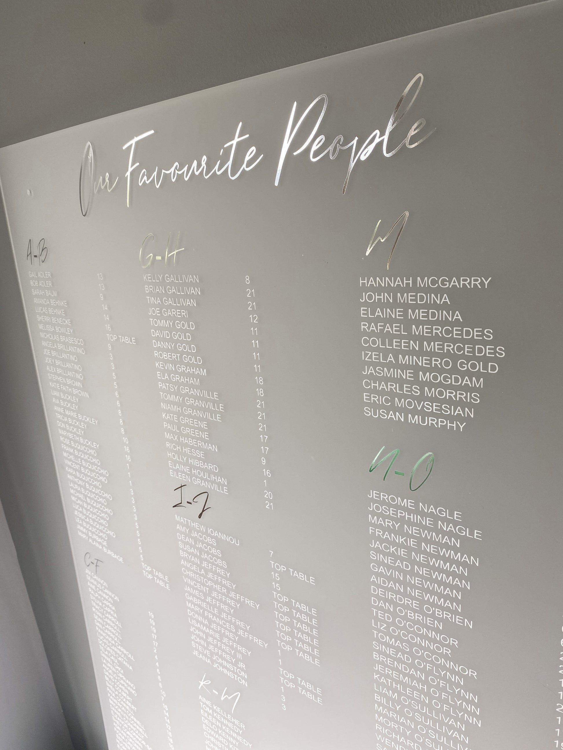 Frosted Seating Chart